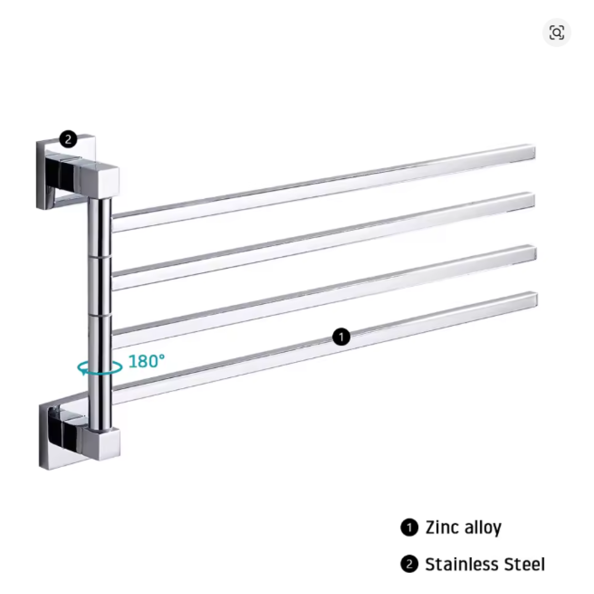 Nasz organizer na ręczniki został zaprojektowany z myślą o 180° ramiona obrotowe, każde ramię można dowolnie regulować w celu ułatwienia wentylacji.