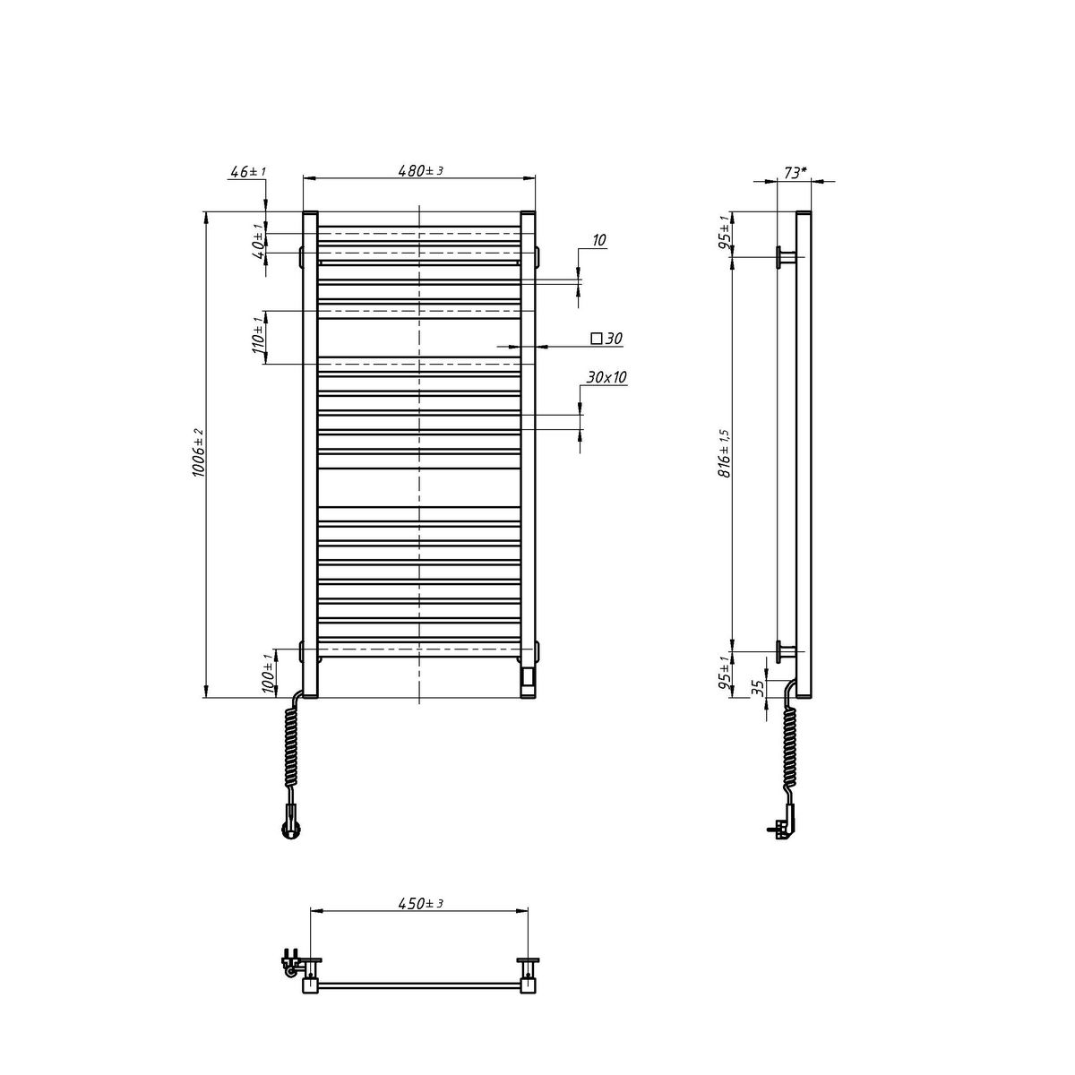 Elektryczny Grzejnik Łazienkowy CZARNY AVANGARD X WiFi 480х1000 lewa