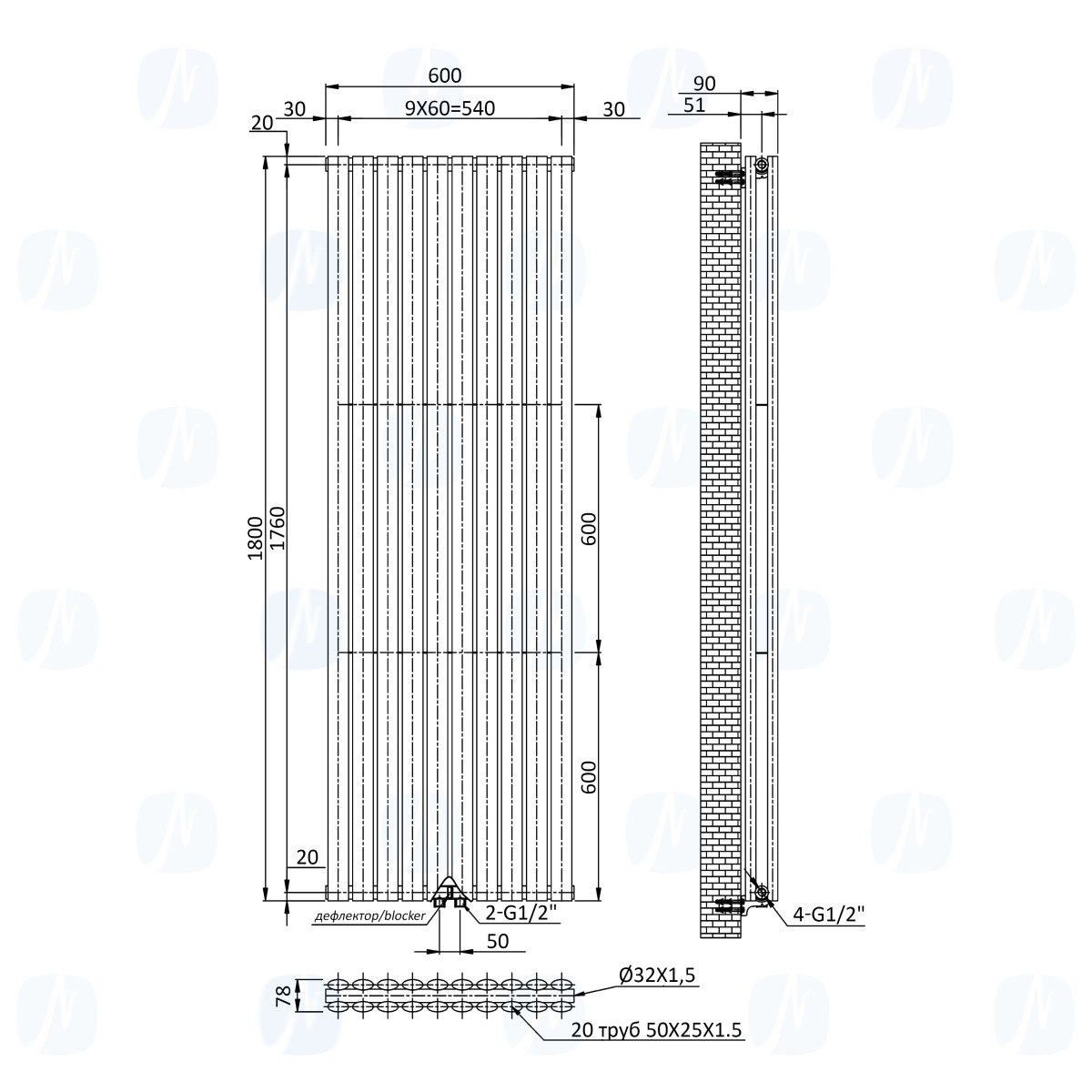 Ten model grzejnika posiada centralne dolne podłączenie 50 mm, co zapewnia:
