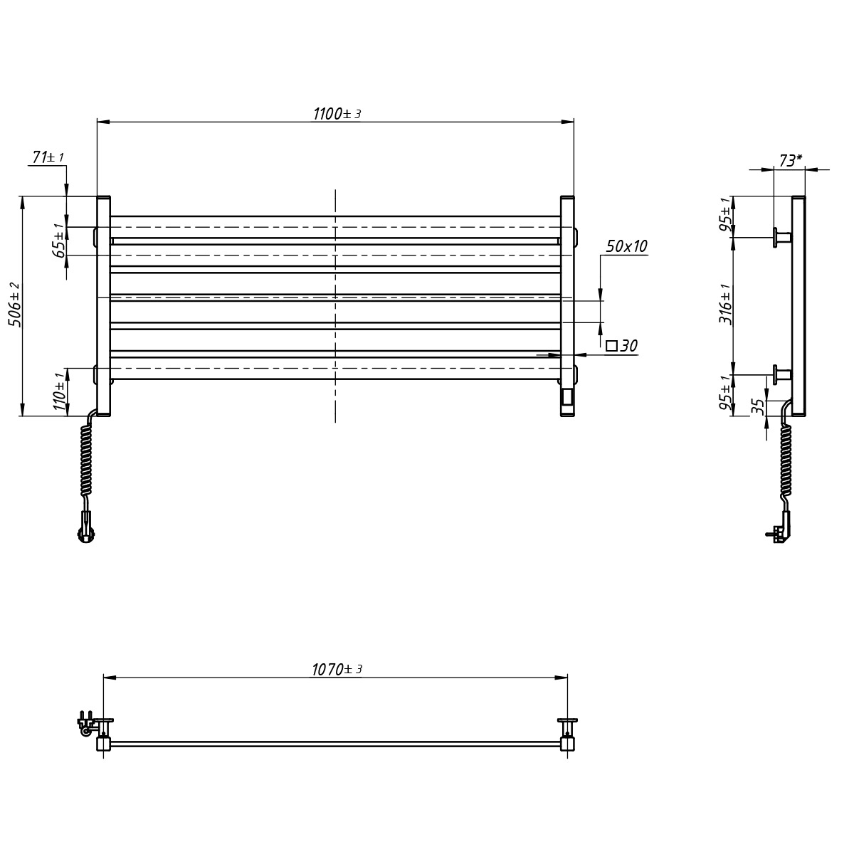 Suszarka na ręczniki Largo 1100x500 Sensor (kolor - biały aksamit; umiejscowienie przewodu z wtyczką - po lewej stronie), wykonana jest ze stali węglowej, czyli wysoka jakość i trwałość. Model posiada niezawodną powłokę proszkową. Grubość ścianek bocznych kolektorów (stojaków) i zworek suszarki wynosi 1,5 mm.